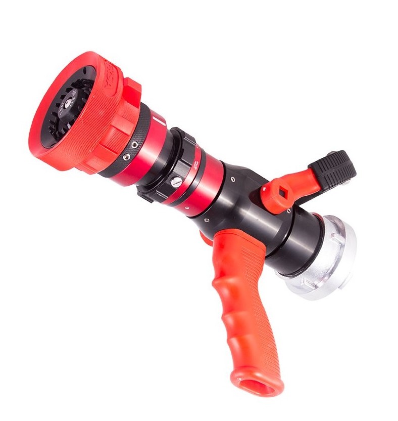 Pitón Ossfire fabricado en aleación de aluminio. Posee un mango tipo pistola con asa y dientes giratorios de alta resistencia, permitiendo un poderoso patrón de neblina. Combina chorro directo y neblina y tiene un flujo constante en todos los patrones. Es resistente a la corrosión para severos ambientes industriales y marinos. Es adecuado para uso en refinerías, plataformas marinas, plantas químicas, instalaciones de almacenamiento, entre otros.