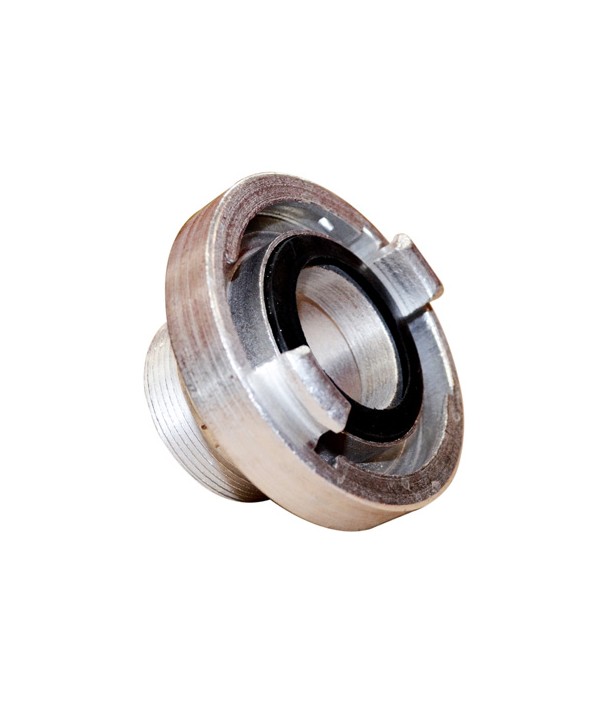 Tuerca Storz HE con hilo exterior tipo BSP que se puede conectar a un equipo contra incendio que posea una salida con hilo BSP. Este acoplamiento, se fabrica con aluminio al 7% de silicio (certificado).